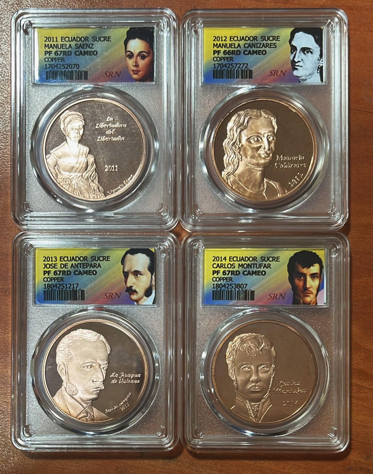 ECUAROR UN SUCRE 2011/2012/2013/2014 Manuela Saenz/Manuela Cañizares José de Antepara/Carlos Montufar Copper PROOF