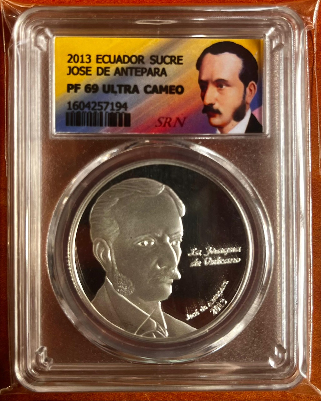 ECUAROR UN SUCRE 2013 José de Antepara Silver 0.999 Solo se acuñaron 50 piezas en Plata PROOF y se acuñaron con y sin LEI